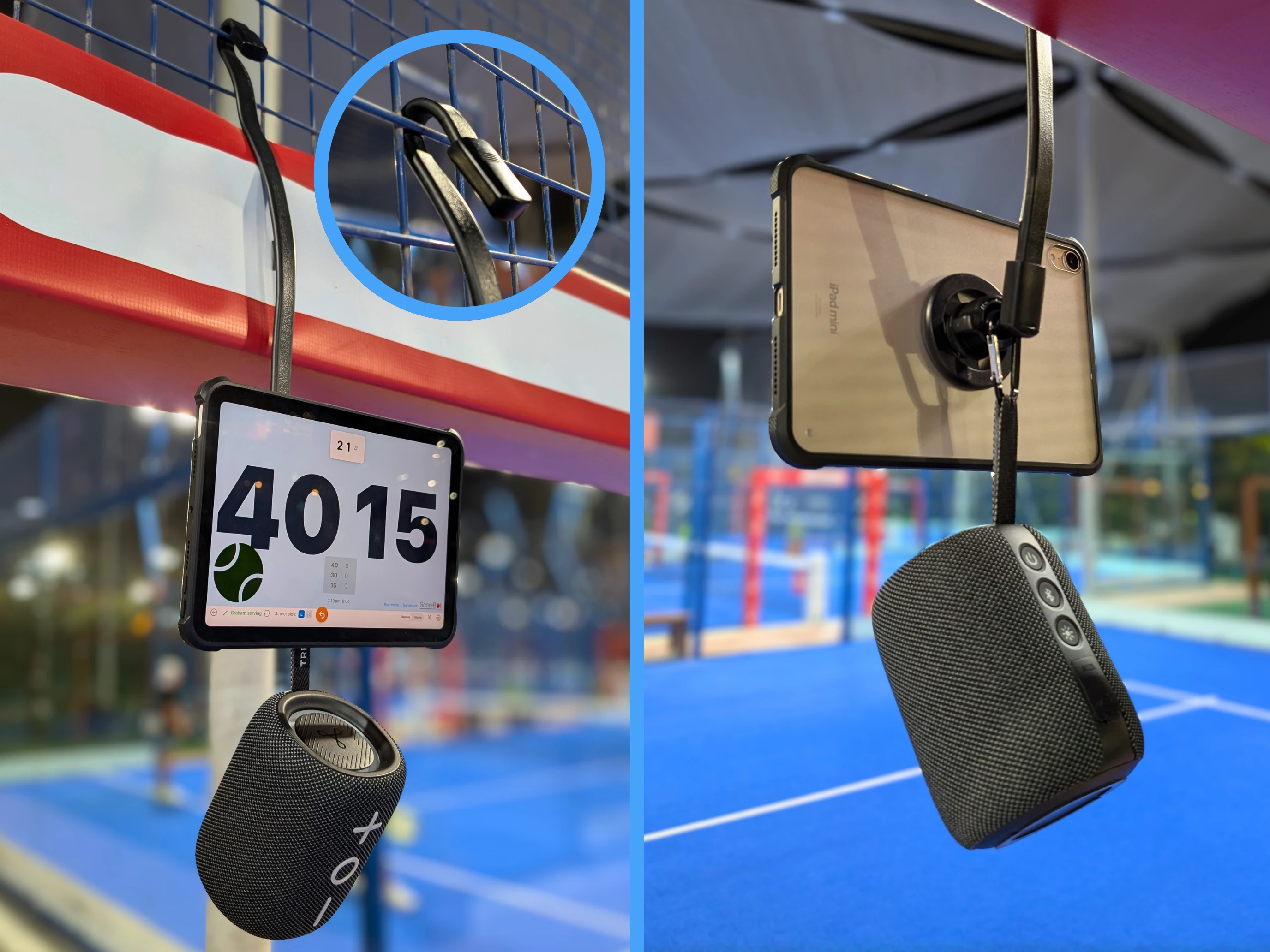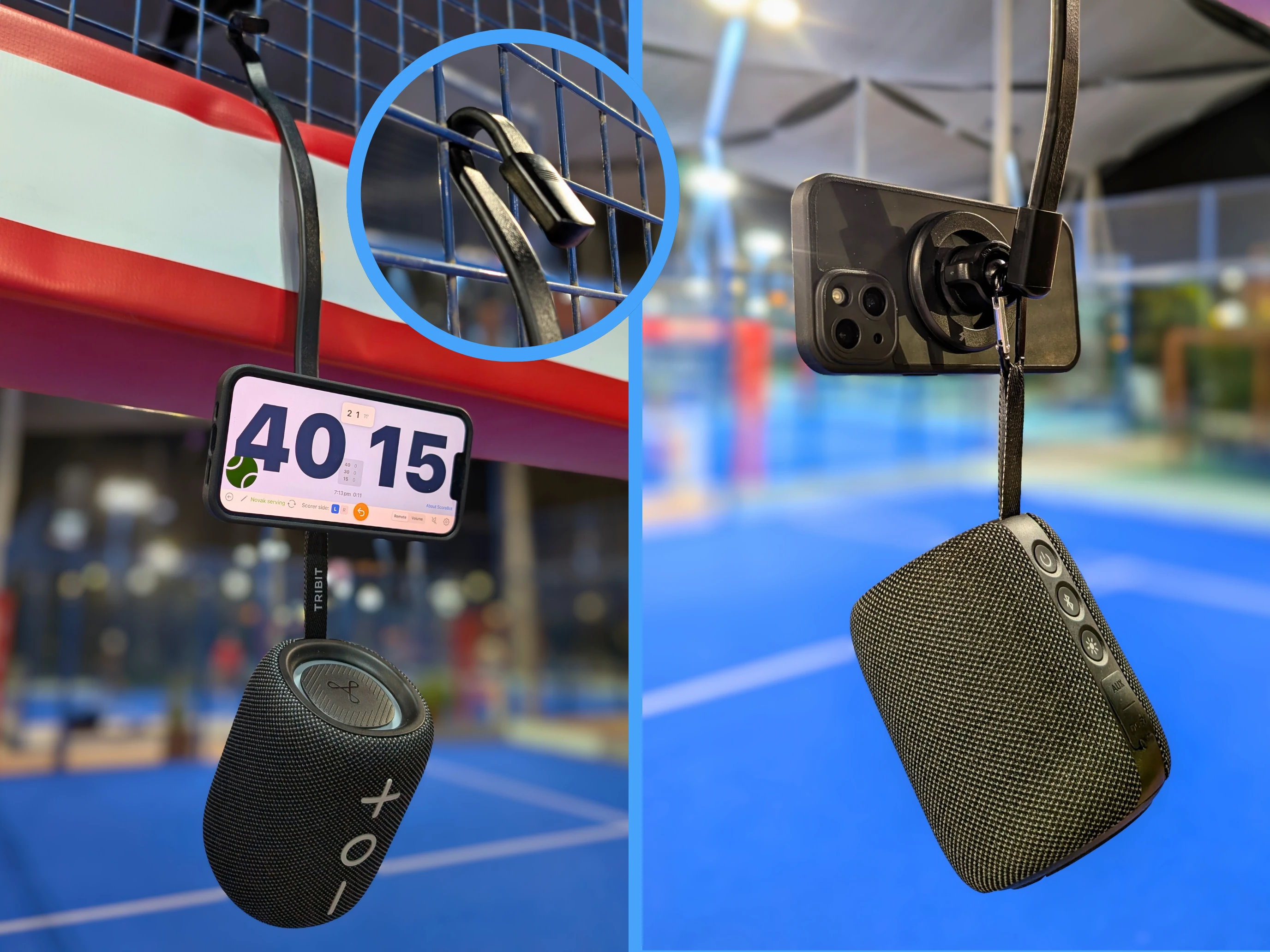Here's how to set up your device and speaker courtside: